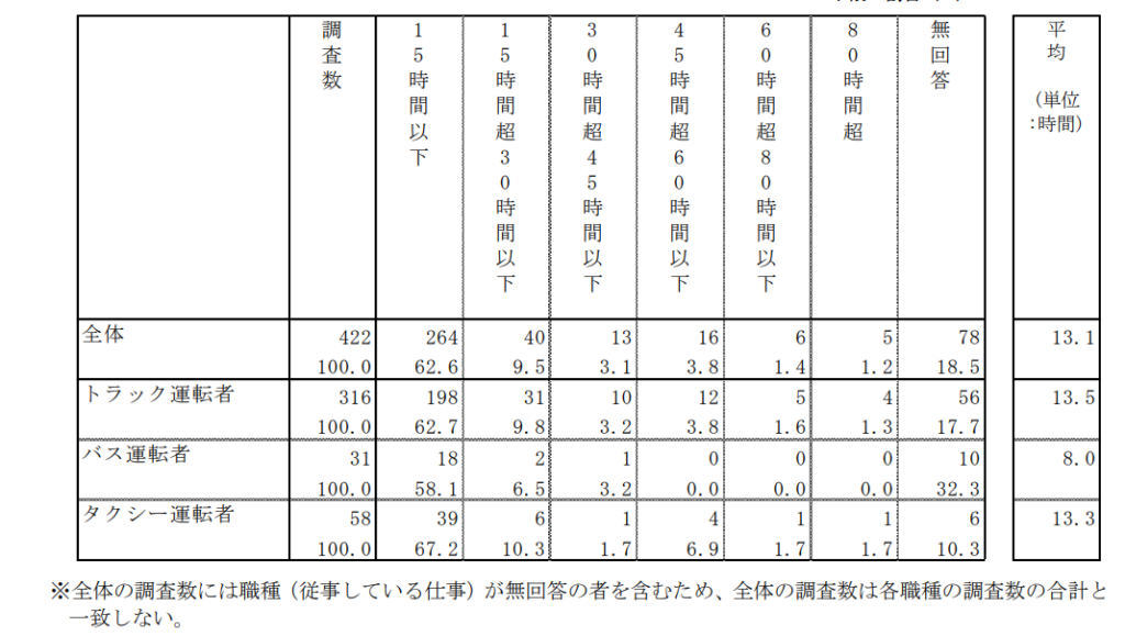 - トラックドライバーの残業時間は平均してどのくらいですか?